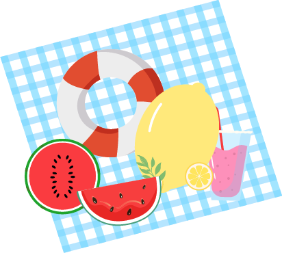 vip1简约风你好夏天纯色背景和野餐布游泳圈柠檬模板