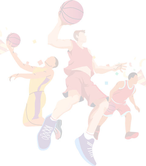 vip2简约卡通篮球赛三个男生篮球场打篮球轮播效果模板