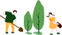 vip1小清新风3.12植树节三人在种植树木河流种树模板