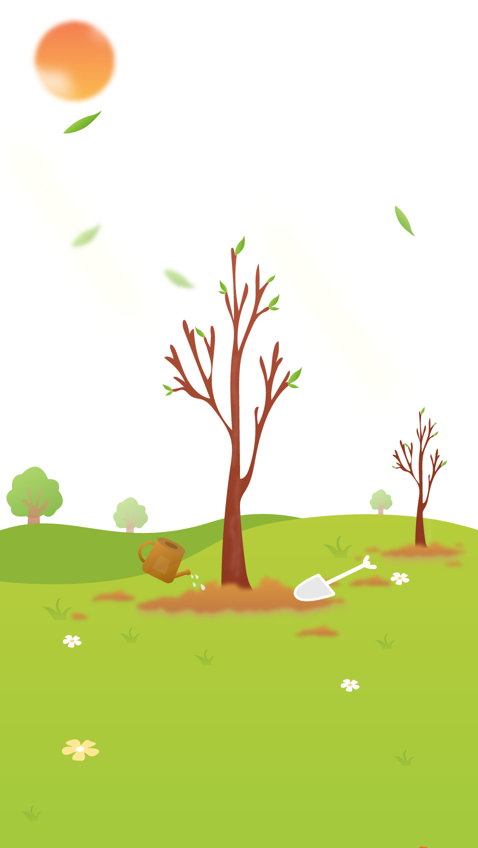企鹅编辑器提供《渐变风植树节植树树木树苗树林铁锹洒水壶模板》公众号模板,模板ID:35608 ,适用于微信公众号排版设计,本样式设计中包含了 节日 植树节 蓝天 白云 云朵 太阳 红日 飘叶 落叶 树木 大树 树苗 山坡 铁铲 铁锹 铲子 花洒 洒水 浇水 花朵 花瓣 线段 直线 交叉 等设计风格。