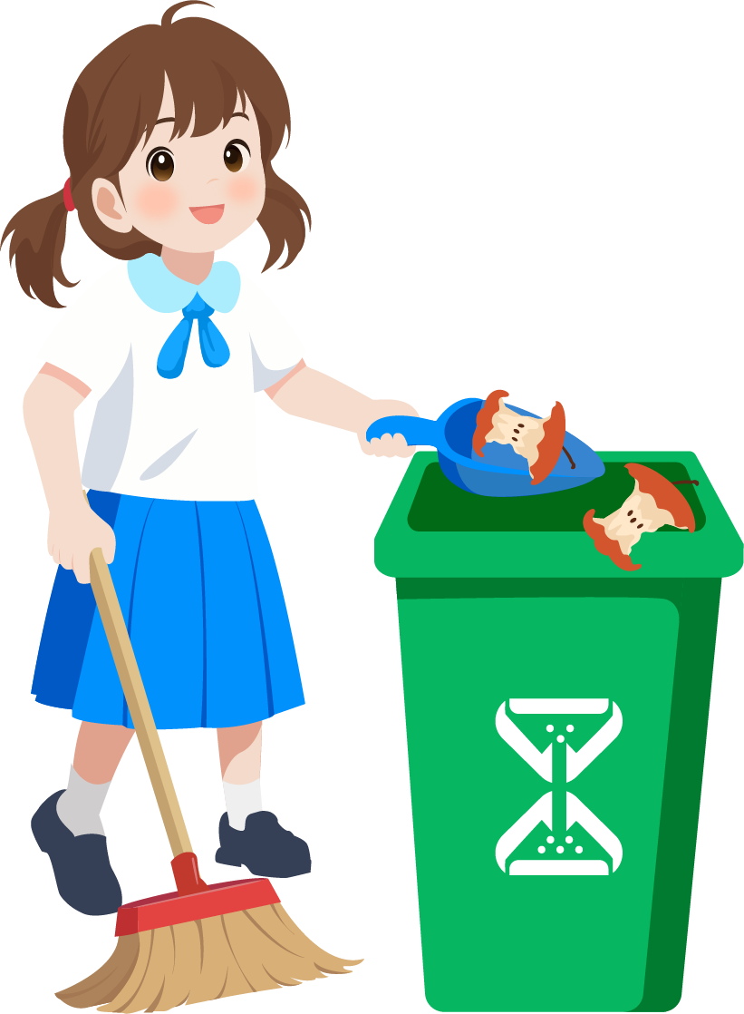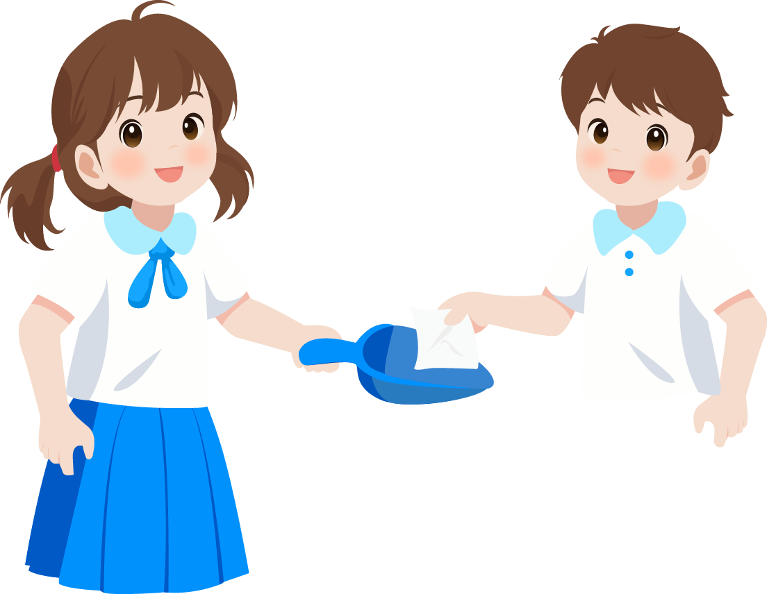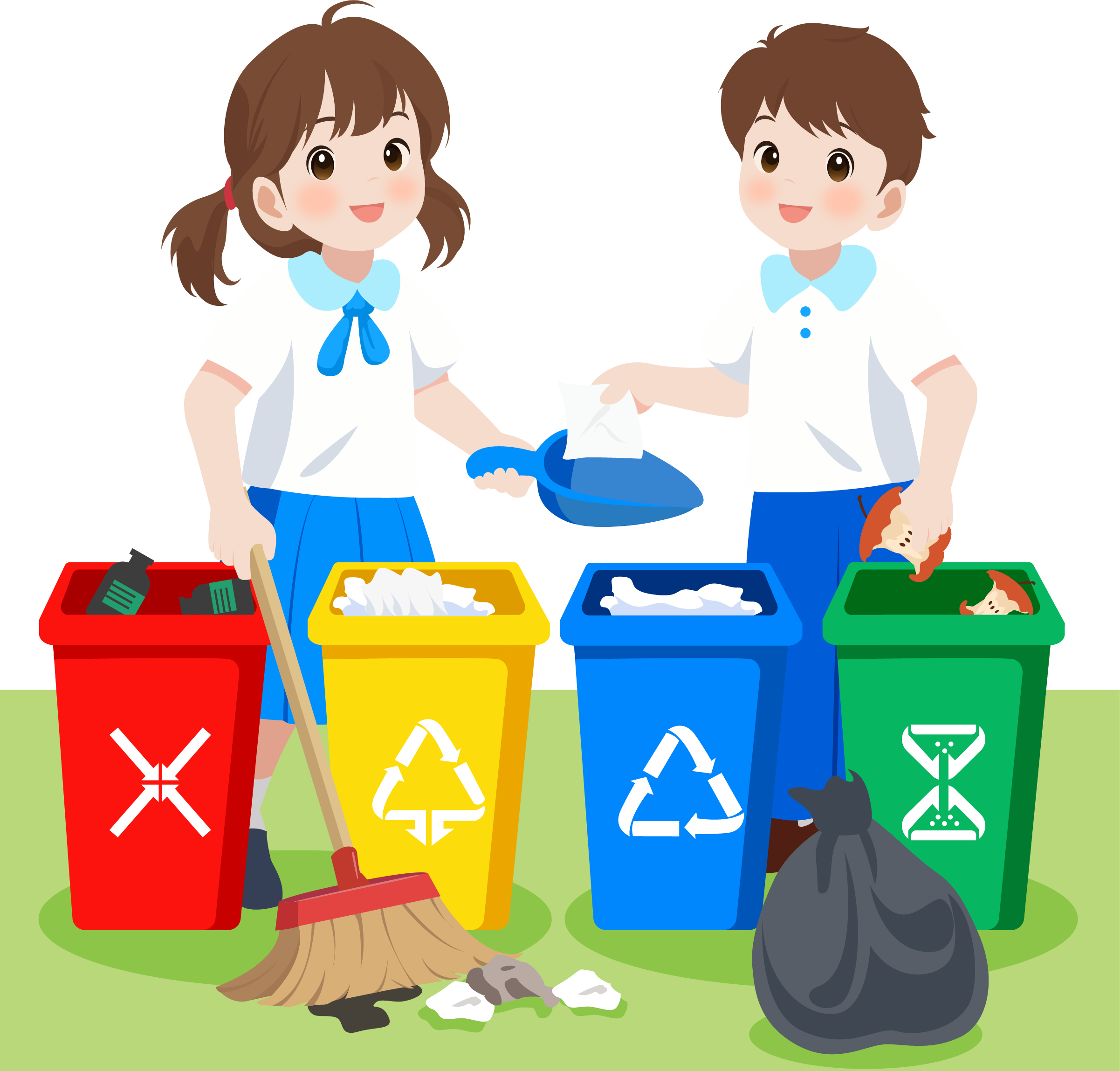 vip1卡通风 幼小学垃圾分类宣传活动 太阳白云垃圾桶男生女生在垃圾桶前给垃圾分类模板