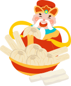 vip2卡通风小年坐在装满蒜和葱段的碗上的财神爷模板