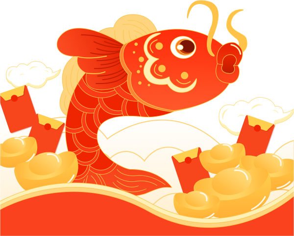 vip2红色喜庆初中春节寒假放假通知书本树枝鲤鱼千纸鹤模板