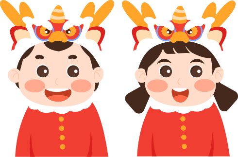 vip2卡通风幼儿园除夕迎新习俗游园活动男孩女孩头戴龙头帽模板