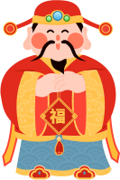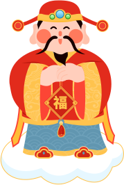 vip1喜庆卡通风小年至祭灶爷金币前拜年的灶王爷模板