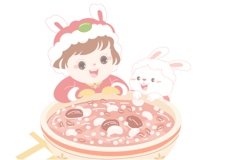 vip1卡通文艺风浓情腊八扒着腊八粥饭碗的女孩和兔子模板