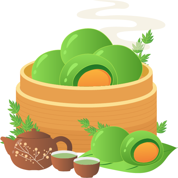 青团一般将绿色植物浆汁揉入糯米粉团,而市面上大多青团都以麦青汁上色。麦青汁是将冬小麦榨出汁液,与水磨糯米粉搅匀拌和,再将其揉制成一个个圆团,包入各种甜咸馅料,上蒸笼蒸熟。出笼时,青团上再刷上一层油,色泽透亮,带着淡淡的艾草香味,吃起来口感又糯又软。每到清明,一个个包着满满馅料的碧绿团子,带着春天的味道唤醒了人们的味蕾。
