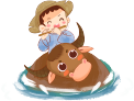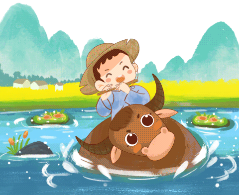 vip2笔刷质感走进清明节气水牛上吹笛子的男孩燕子柳枝模板