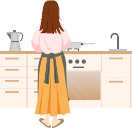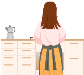 vip2唯美卡通风母亲节快乐母亲在厨房做饭女孩手捧鲜花背对母亲模板