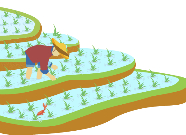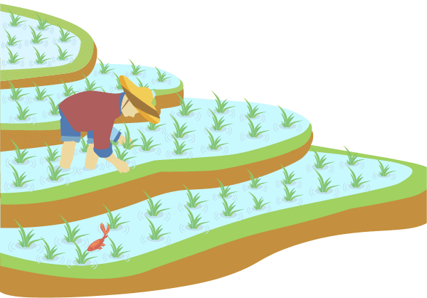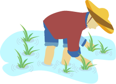 vip1卡通风二十四节气芒种农民在稻田里插水稻模板