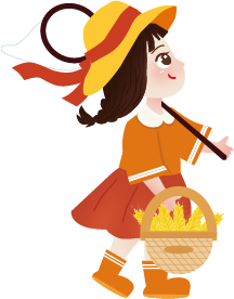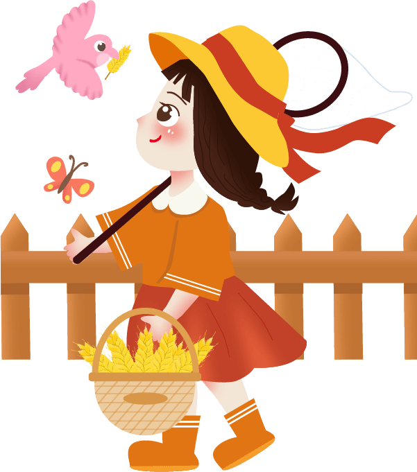 vip2可爱卡通风二十四节气芒种小女孩扛着捕捉网手掂麦穗蓝走在农田里模板
