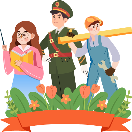 vip2文艺风五一劳动节劳动最光荣三位劳动者站在花丛后模板
