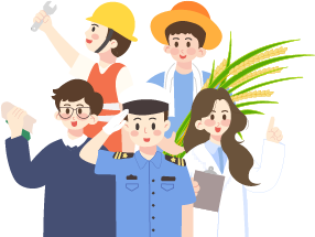 vip1卡通风5.1劳动节快乐五位劳动者站在麦穗后模板