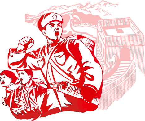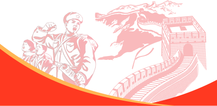 vip2质感长征胜利纪念日手绘长城前的军人手拿动态飘带模板
