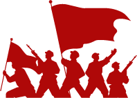 vip1政务风格节日抗战胜利纪念日山坡上红色剪影军人和红旗模板