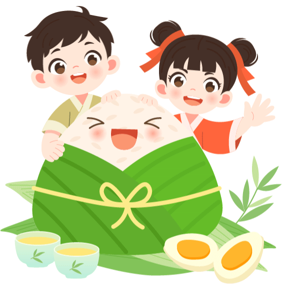vip2文艺卡通端午节放假通知及温馨提示悠悠粽香端午安康大粽子小男孩和小女孩茶粽叶竹叶鸡蛋模板