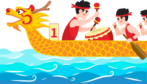 vip2卡通文艺风五月五日端午节三个男孩一组在划龙舟比赛模板