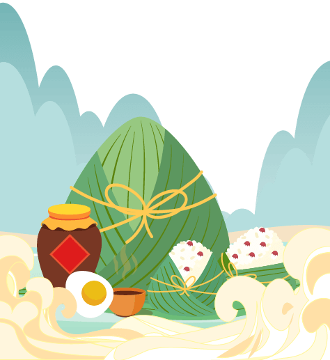 vip2渐变风五月五端午节山丘粽子旁放着雄黄酒鸡蛋模板