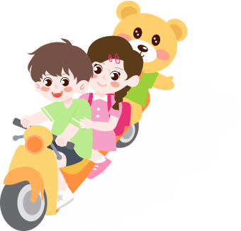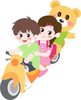 vip1卡通可爱风格幼小学开学通知骑着电动车的男孩女孩和动物模板