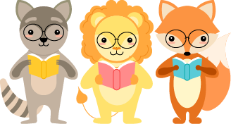 vip1卡通风幼儿园戴眼镜的浣熊狮子狐狸在看书模板