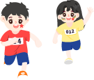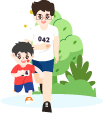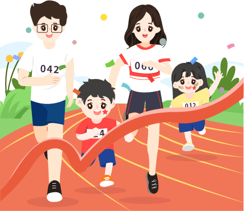 vip2卡通风幼儿园亲子MINI马拉松比赛中男孩女孩和父母一起赛跑模板