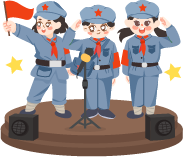 vip2卡通风小学六一儿童节红色文艺汇演中三个孩子穿着军装表演模板