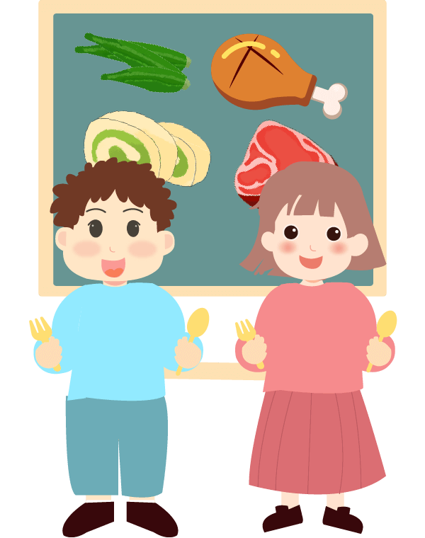 vip1幼儿园本周食谱精选画有鸡腿秋葵黑板前面的男孩女孩模板