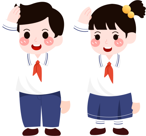 vip2卡通风幼儿园春季开学典礼红旗下戴红领巾敬礼的男孩女孩模板
