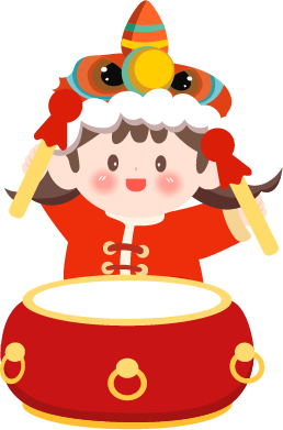 vip2卡通风幼儿国新春开学活动正在舞狮擂鼓的男孩女孩模板