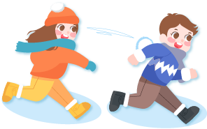 vip2卡通风寒假通知雪地里打雪仗玩耍的四个小朋友模板