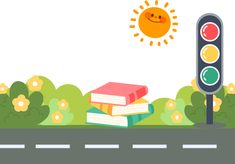 vip2文艺风幼儿国安全教育木框标题下公路上的红绿灯和书本模板