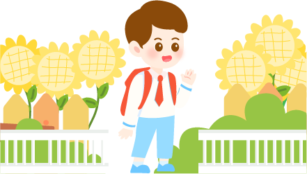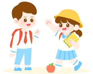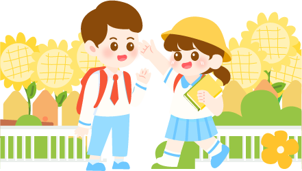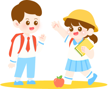 vip1卡通风幼儿园春季招生房子前背书包打招呼的男孩女孩模板