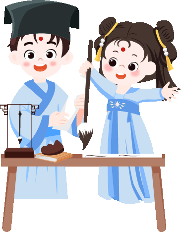 vip2古风小学一年级开笔礼仪式男孩拿着纸女孩用毛笔写字模板