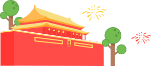 vip1卡通风幼儿园国庆节活动天安门前男孩女孩手拿红旗互相追逐模板