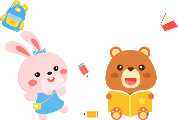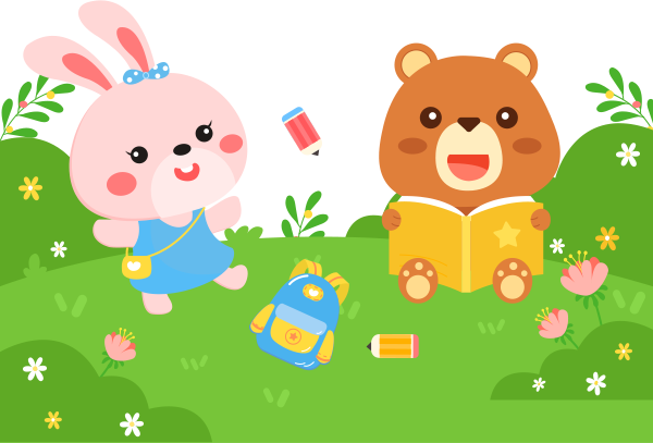 vip1简约风开学第一课主题班会草地上看书的小熊和玩耍的兔子模板