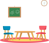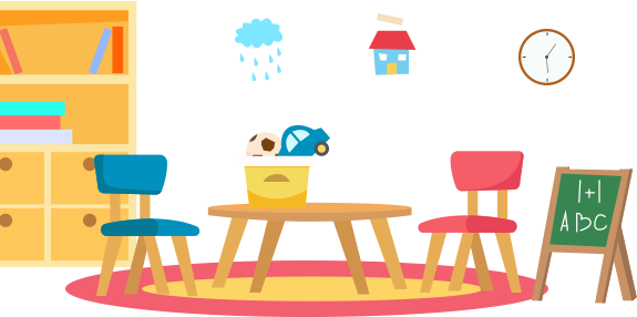 vip1简约风格幼儿园开学准备工作安排书架前扫帚水桶和桌椅模板