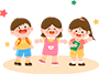 vip1简约风幼儿园秋季招生男孩背书包两个女孩抱着课本和开心大笑模板