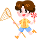 vip1可爱卡通风六一儿童节六一出游小男孩拿着棒棒糖捕捉网捕捉蝴蝶模板