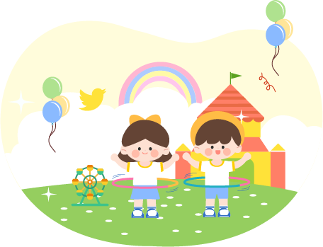 vip1卡通风幼儿园每天早操运动男孩女孩在晃呼啦圈模板