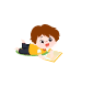 vip1卡通风幼儿园在校一日活动栅栏后男孩趴在草坪上看书模板