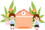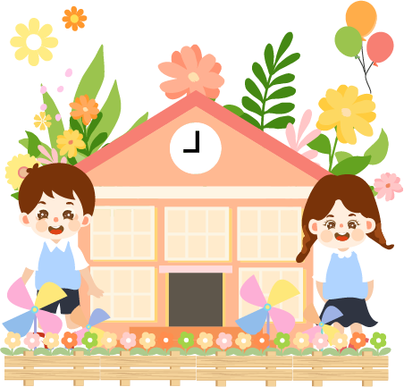 vip1卡通风幼儿园开学啦学校前栅栏风车和开心笑着的男孩女孩模板