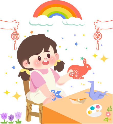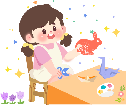 vip1卡通风幼儿园手工课上女孩动脑动手剪纸折纸模板