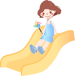 vip1卡通风六一儿童节小男孩小女孩在草地上玩滑滑梯模板