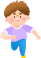 vip1卡通风幼儿园运动会彩旗下高楼前正在跑步的小男孩模板