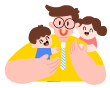 vip1渐变风父亲节快乐父亲抱着小男孩肩膀上背着小女孩模板