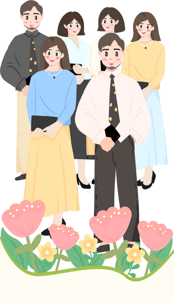 vip1文艺简约风大学年度优秀教师事迹展四个女教师两个男教师站在花朵前模板