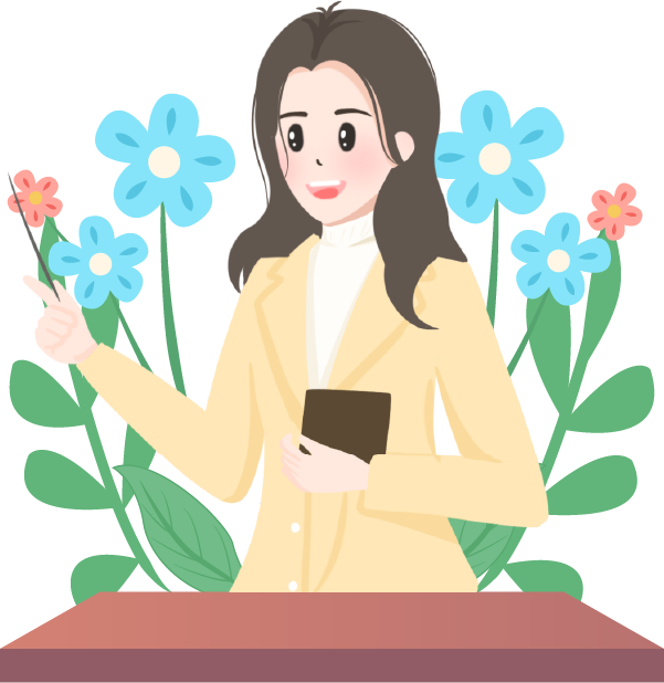 vip1文艺小清新大学优秀教师表彰女老师手拿教鞭站着花丛前模板