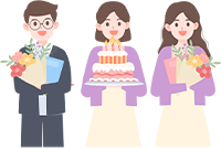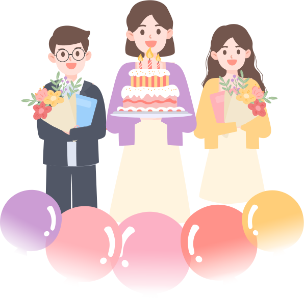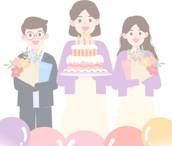 vip1文艺简约风教职工集体生日会女教师手捧蛋糕旁边俩位教师手捧鲜花模板