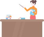 vip1文艺小清新幼儿园教职工述职报告女老师指着白板边框标题模板