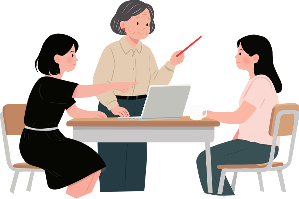 vip1扁平插画风格暑期教研纪实室内老师暑期教研探讨模板